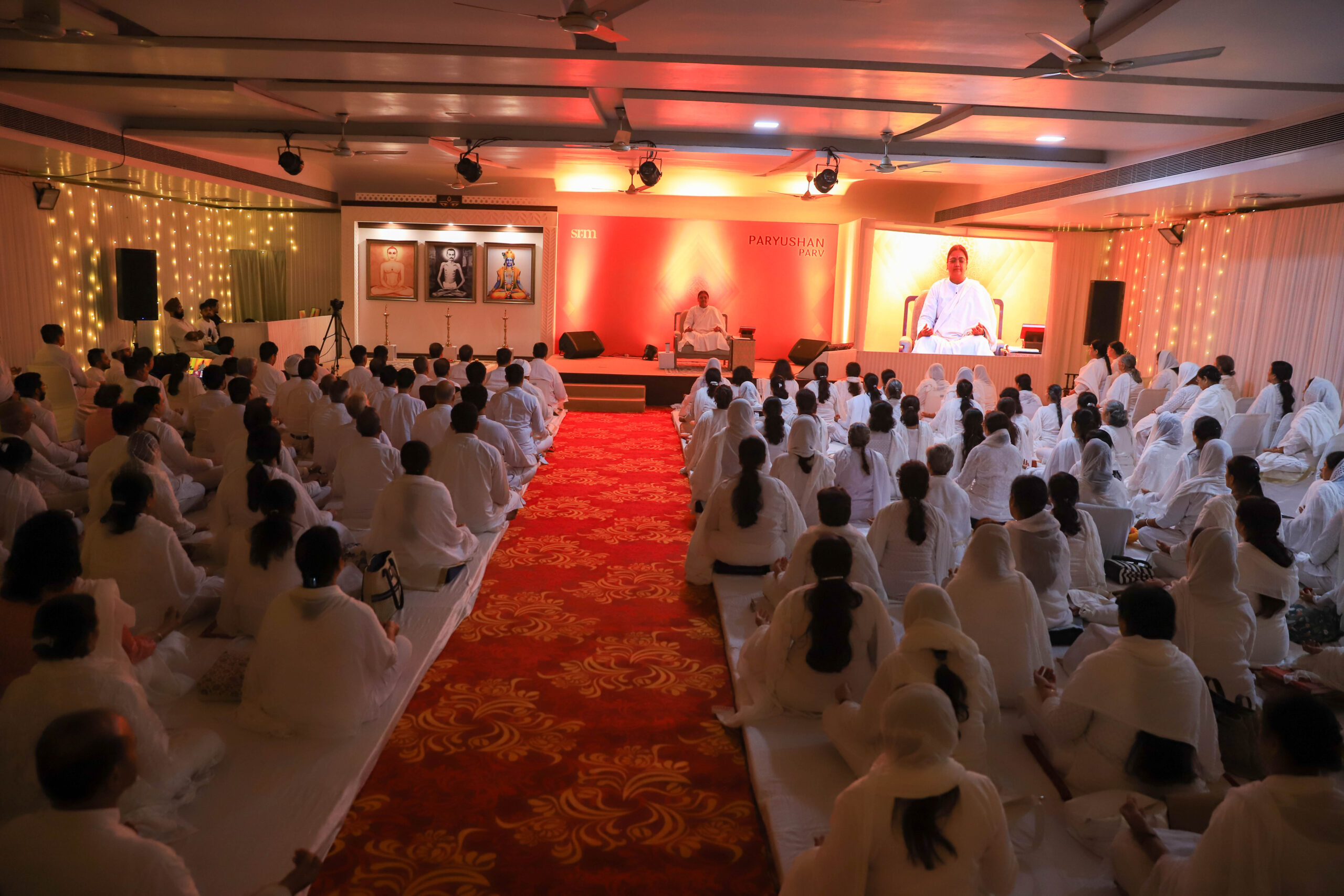 This was the devotion-filled poetry that marked the jubilant inauguration of this year’s Paryushan Parv at SRM. While all four of the foundational pillars of SRM – Prem (Love), Seva (Service), Sanyam (Discipline), and Sadhana – are equally important on a seeker’s spiritual journey, each becomes slightly more prominent on certain special days of the year. During the 8 days of Paryushan Parv, celebrated annually in the months of August-September, the tide turns towards Sanyam and Sadhana, as SRM rejoices in its 3rd and 4th pillars with meditative fervor.