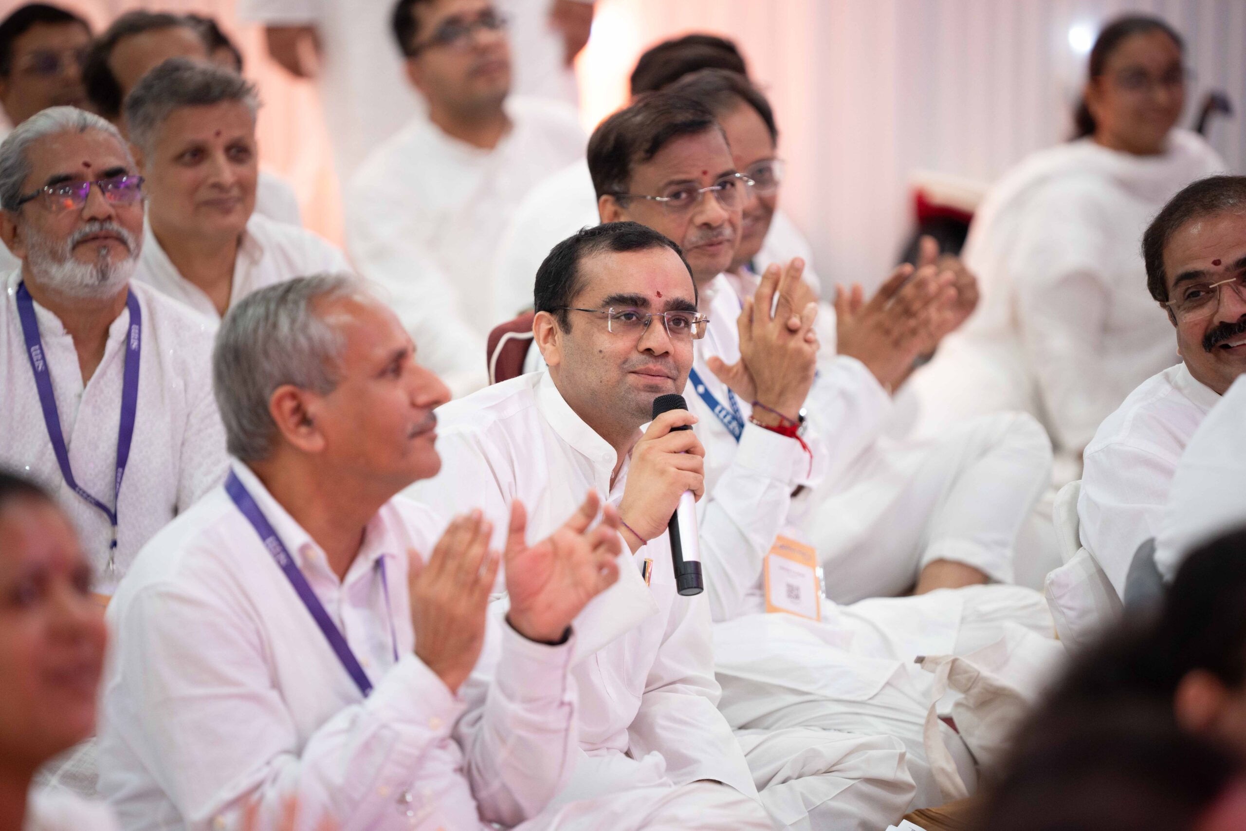 Yet, there was one moment that was probably the highlight of not just this festival, but of our lifetime. In spirituality, a Guru blessing a disciple with a sacred mantra is a highly revered tradition. The mantra serves as a tool for instant connection, powerful enough to uplift the disciple from even the nadir of negativity, right into the lap of his Guru – haven’t we all felt that purifying power of Trimantra, Param Krupadu Dev’s gift to His disciples? This year’s Paryushan Parv, however, gave us a much more personal and relatable tool for connection, marking a golden page in the history of SRM: Sri Guru blessing all of us with three sacred mantras, along with specific guidance on when to use each one!