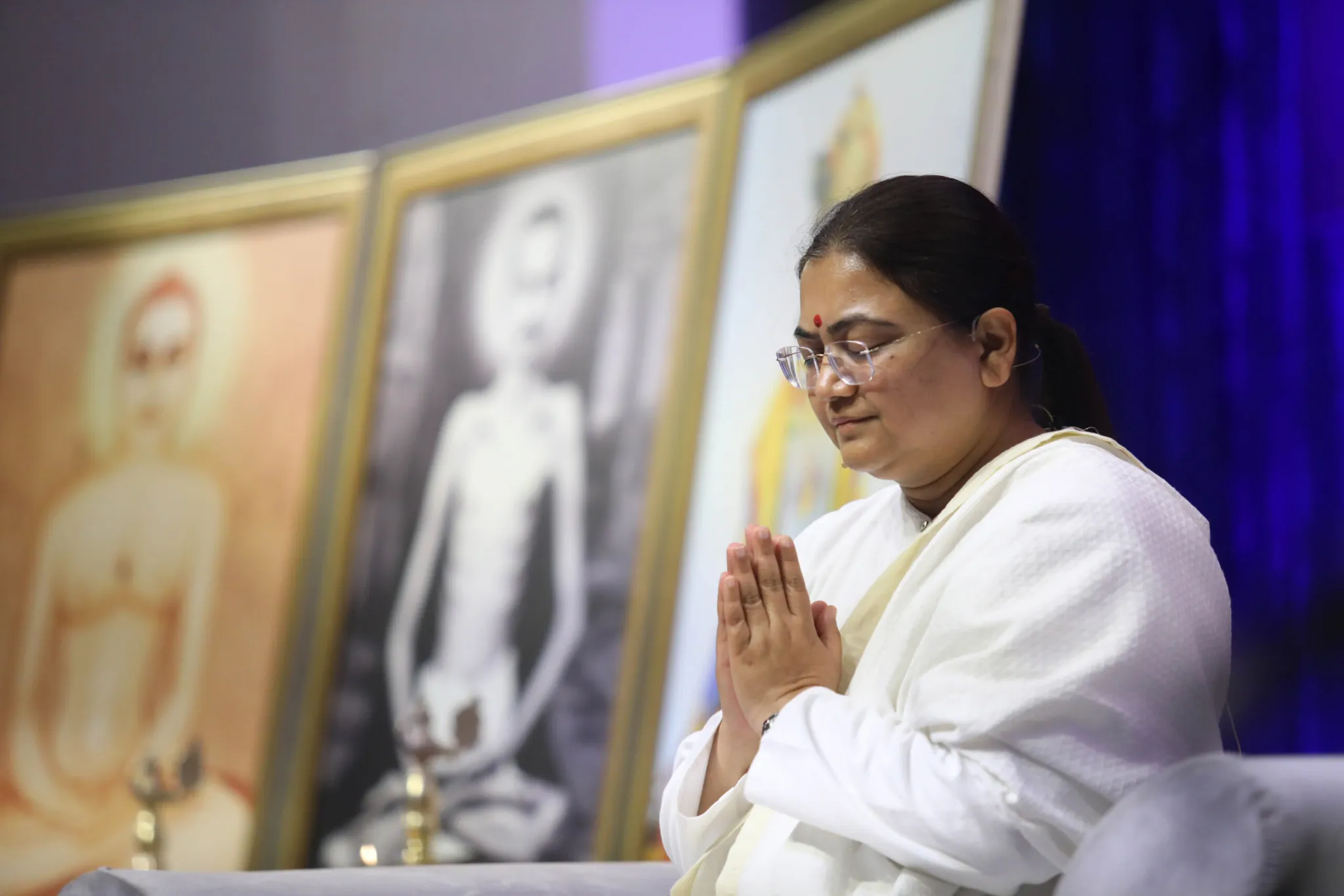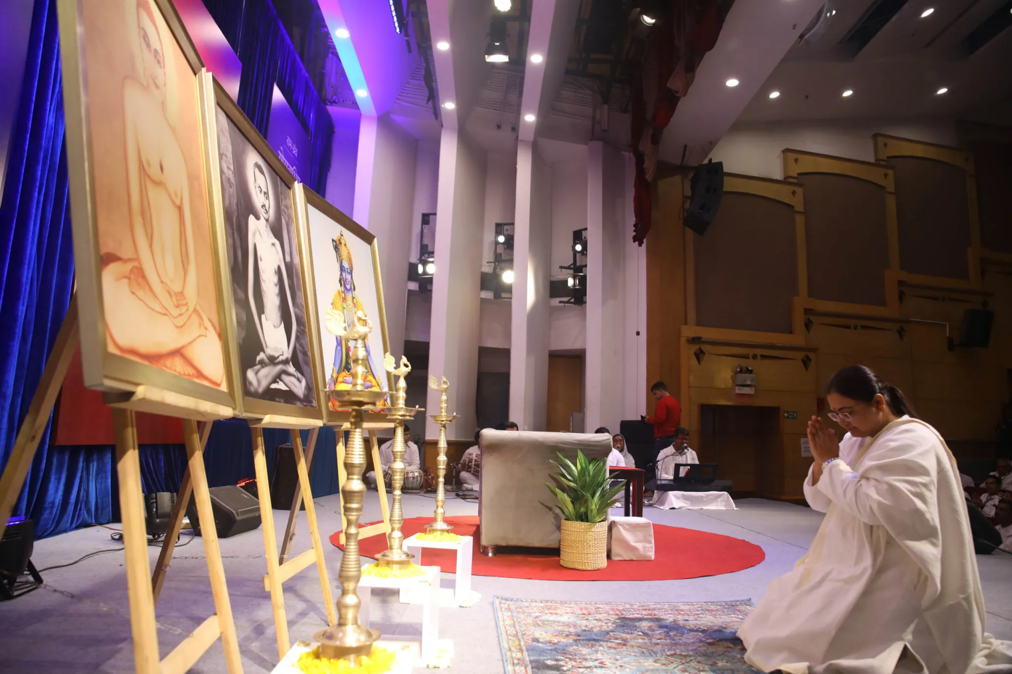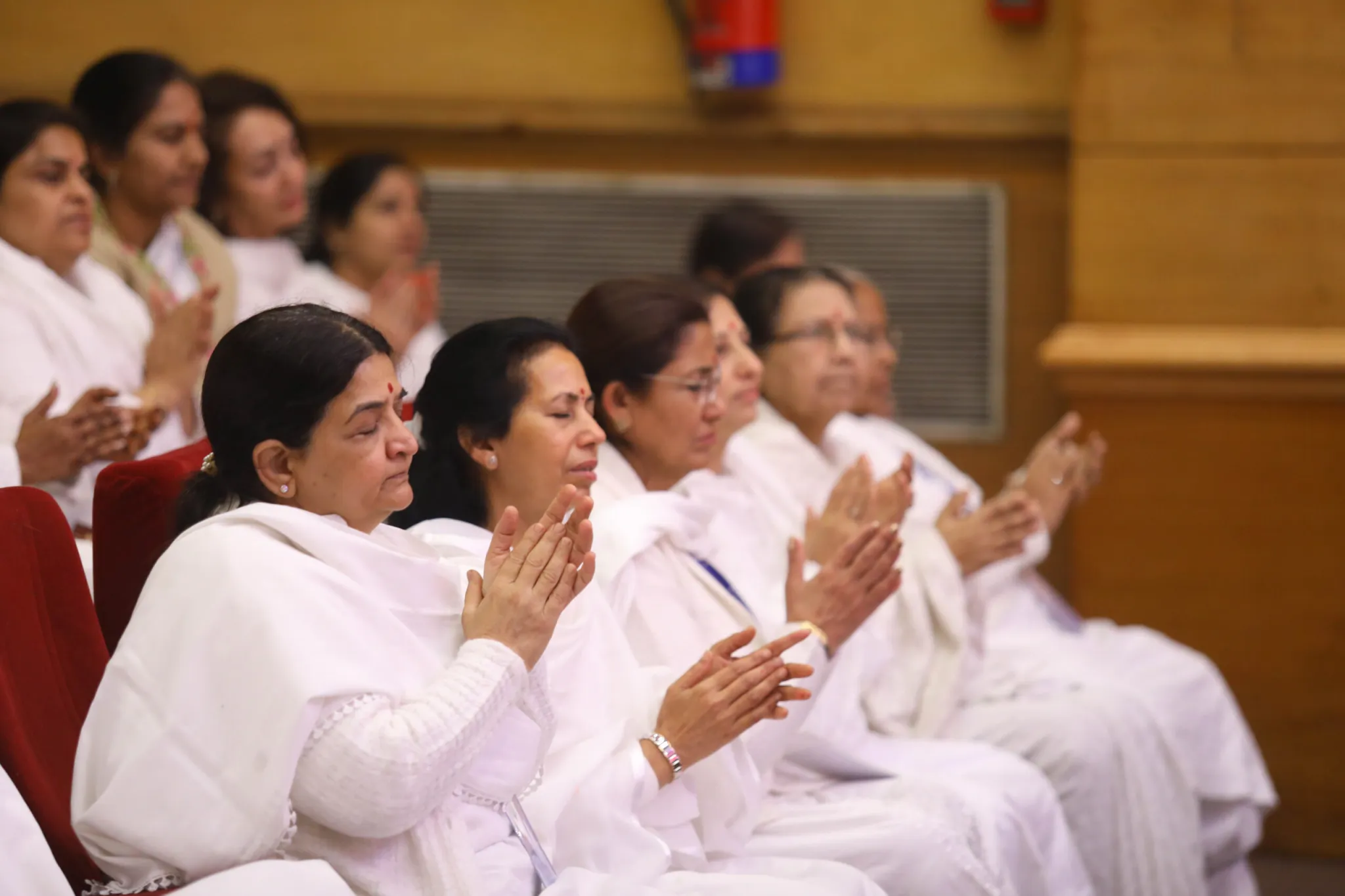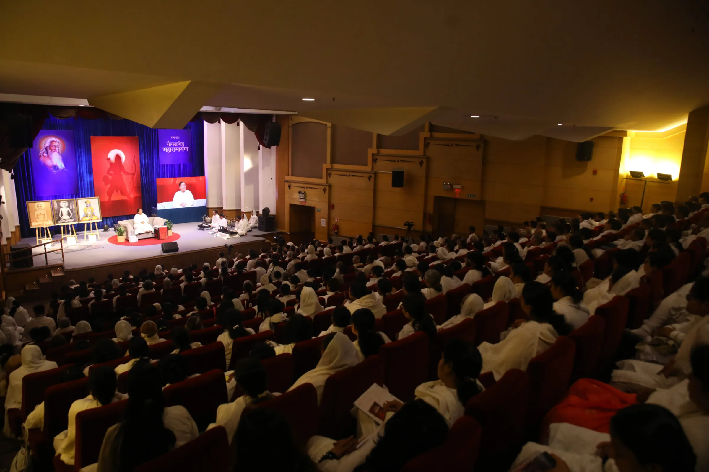 At SRM, the Guru’s path is both dynamic and detailed. Not only do we seek clarity from scriptures, but also learn to relay that wisdom into experience through powerful meditation techniques. With this spirit, Sri Guru introduced the Shakti Kriya, a new meditation practice to empower us against our frequent worldly desires. Through the Shakti Kriya, the Master guided all to focus on the Nabhi Mandala, a region in the spine that houses two important energy centres – the Swadhisthan Chakra and Manipur Chakra. By the time the Kriya concluded, a deep sense of calm had enveloped the auditorium, with everyone feeling renewed.